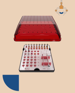 Cada kit é composto por instrumentais, fresas e chaves organizados de acordo com o sistema protético ou cirúrgico correspondente.
